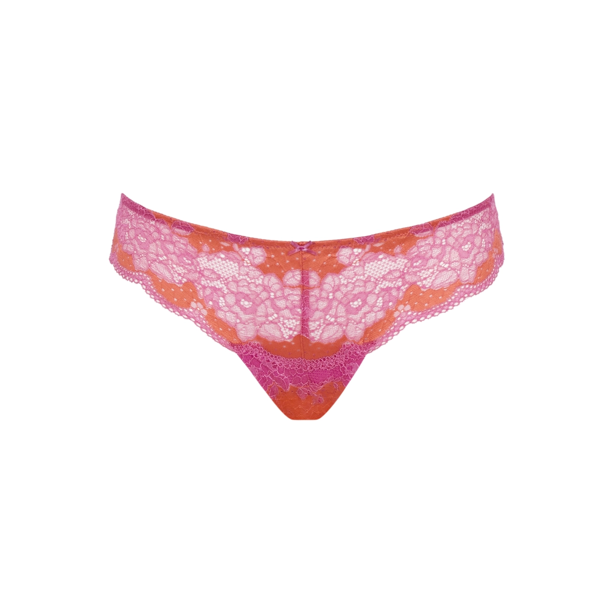Pro neodolatelný a elegantní vzhled jsou tou pravou volbou tanga Clara! Snoubí se v nich luxusní oranžová a růžová krajka a vytváří mladistvou kombinaci