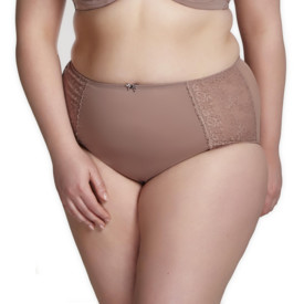 Kalhotky v odstínu Cappuccino díky vyššímu střihu schovají a vyhladí bříško.